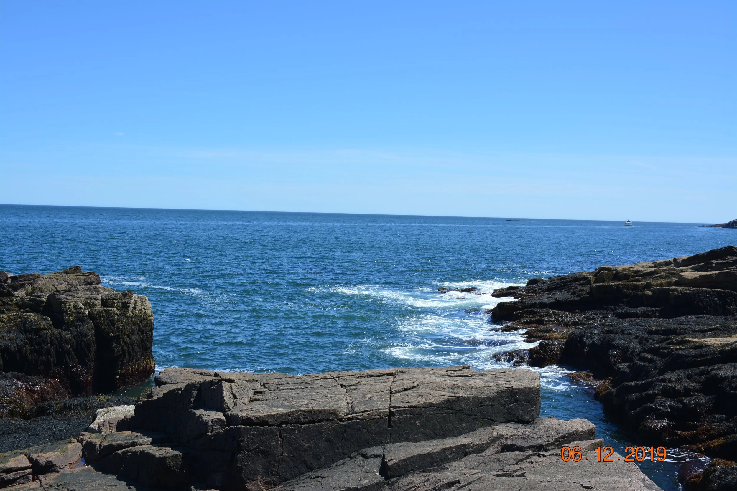 One of the coolest stops was Thunder Hole—a small inlet carved into the granite rocks. When the tidal conditions are right, waves rush into the cavern below and spew out with a thunderous roar. We also got panoramic views of Otter Cliff and the Schoodic Peninsula from here.