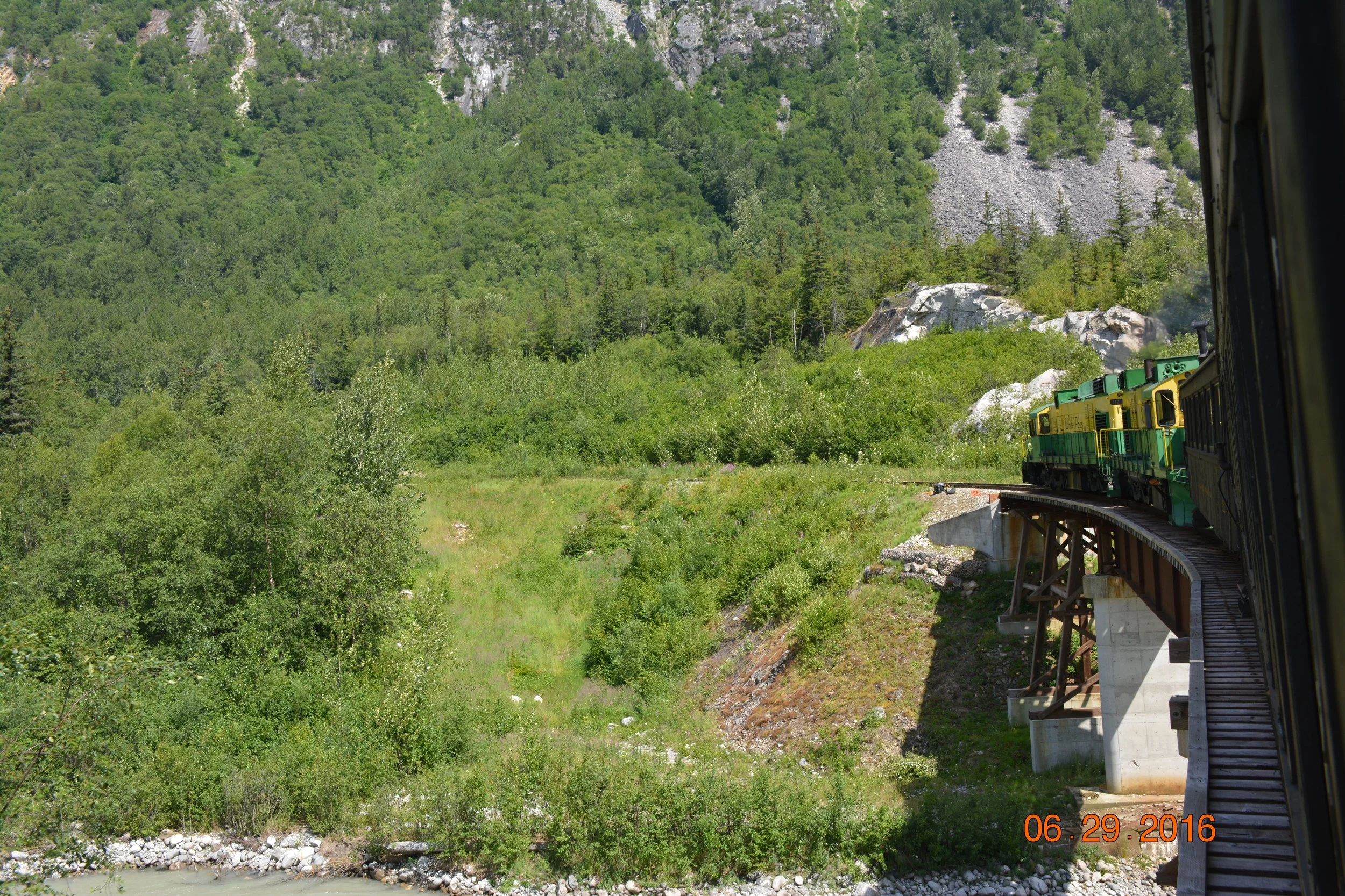We didn't move from the windows the entire ride. Gorges dropping away below us, waterfalls everywhere, mountain peaks, glimpses of glaciers – it just kept getting better. This railway is recognized as an International Historic Civil Engineering Landmark.